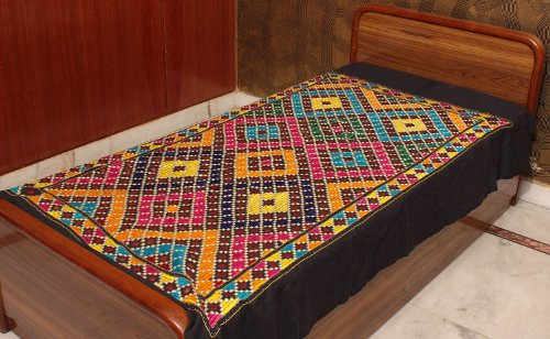 Black Single-Bed Batik Bedspread from Kutch with All-Over Embroidery and Mirrors - Pure Cotton Review