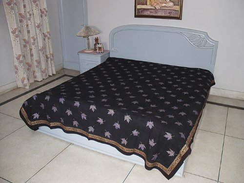 Vintage Home Decor Block Print & Brocade Work Cotton Bed Sheet Bedspread Review