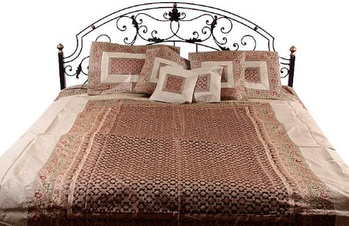 Ivory and Brown Seven-Piece Banarasi Bedcover with Brocade Weave - Silk - With Pillow Cases and Cush Review