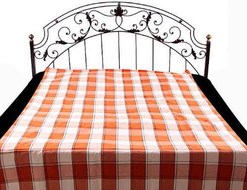 Ivory and Rust Single-Bed Bedspread with Giant Checks - Pure Cotton Review