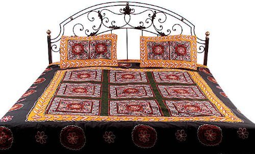 Black Gujarati Bedspread with Hand-Embroidery All-Over - Pure Cotton Review